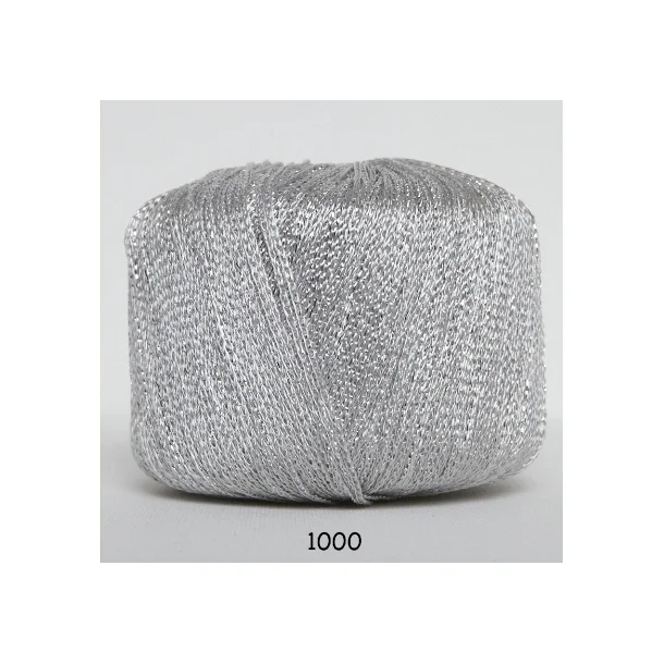 70% Viccose 30% Lurex Vægt: 50g Pinde: 2½ – 3 Løbelængde: ca. 190m Vask: Vaskes ved 30° på uld program. Velegnet til at strikke sammen med en anden tråd.
