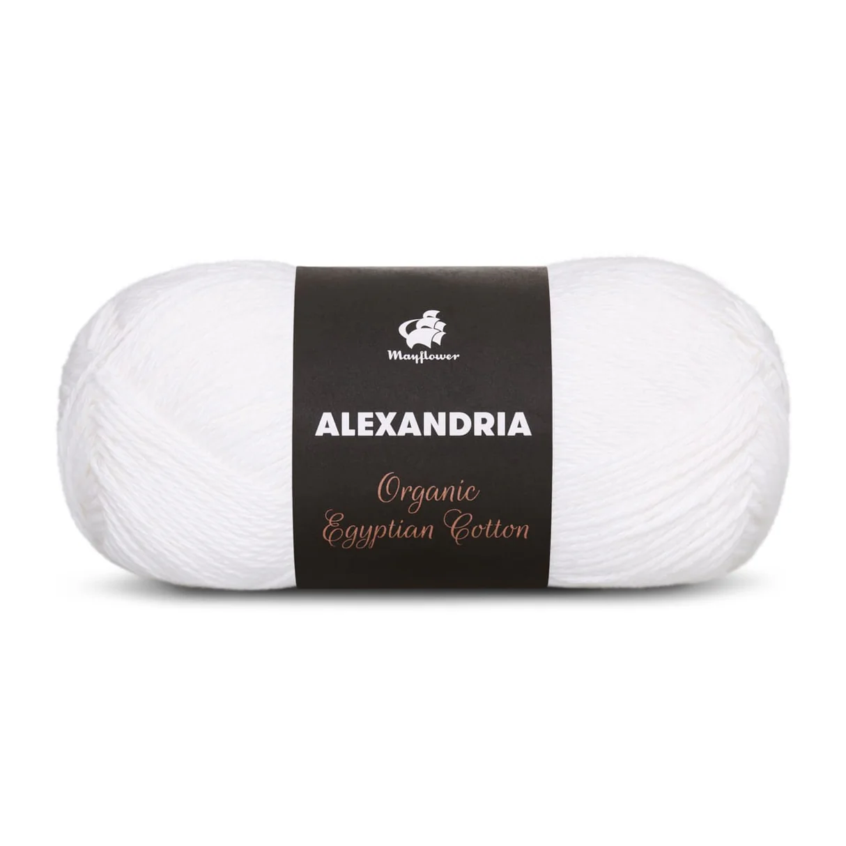 Alexandria er et vidunderligt blødt, slidstærk og langtidsholdbart valg til strik eller hækling af beklædning, interiør og accessories. De lange og fine egyptiske bomuldsfibre giver et blødt, silkeagtigt, glansfuldt og elastisk resultat. Det er spundet på fire tråde og har en klassisk tykkelse som gør, at det kan bruges til alle Mayflowers opskrifter med Cotton 8/4.